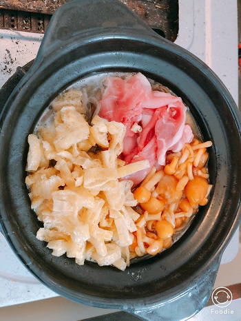 そうしたら、鍋に出汁を作っておきそこに蕎麦、油揚げ、なめこをいれ一煮立ちさせます!